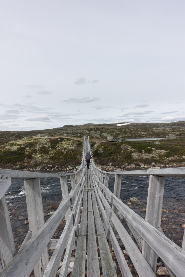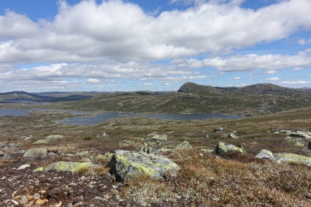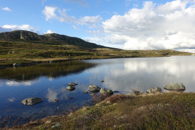 Es lief sich gut in der Hardangervidda. Die Wege sind sehr umfangreich markiert und meist gut zu gehen, es gab vergleichsweise wenig Matsch und Sumpf und auch die Steigungen halten sich in diesem Teil in Grenzen. Echtes Genusswandern also, mit viel Gelegenheit die umgebenden Landschaft zu bestaunen und den eigenen Gedanken nachzuhängen.
