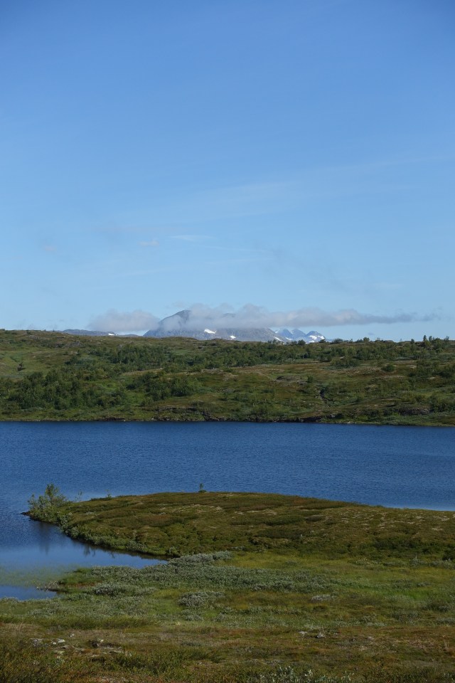 Von Røyrvik ging es zunächst die 15km auf der Straße bis zum Namsvatnet, dem Eingangstor des Børgefjell Nationalparks und dann mit dem Boot über den See. Der See ist zu Fuß kaum zu umrunden, es gibt keinerlei Pfade, lediglich eine Menge Sumpf und Gestrüpp. Folglich nutzen fast alle Norge på langs Wanderer ein kleines Shuttle Boot, das einmal täglich verkehrt und auf Vorbestellung bis zum 6 Personen befördern kann. Die durchaus rasante Fahrt über den See war nach Monaten des zu Fußgehens mit einer maximalen Geschwindigkeit von 5-6km/h an sich schon ein einprägsames Erlebnis. Ein echter Geschwindigkeitsrausch. Das eigentlich beeindruckende war allerdings der Ausblick auf die Ufer und die umliegenden Berge. Ich hatte das Gefühl mich mit jeder Minute noch weiter von der Zivilisation zu entfernen, als man es in Norwegen eh schon grundsätzlich fast immer ist. Das Gefühl von grenzenloser Weite und der Anblick der vorbeiziehenden Ufer, hat mich intensiv an den Norden Kanadas und meine Tour auf dem Yukon vor einigen Jahren erinnert. Entsprechend voller positiver Erwartung bin ich am Ende des Sees von Bord gegangen. Und ich wurde nicht enttäuscht, das Børgefjell ist auf vielfältige Art ein echtes Juwel und gerade seine Weglosigkeit trägt meiner Meinung nach dazu bei, dass das Gefühl echter Einsamkeit und Abgeschiedenheit erhalten bleibt, auch wenn das Gebiet an sich gar nicht so groß ist. Innerhalb von zwei Tagen sind wir vom Ufer des Namsvatnet hinauf bis in die felsigen Höhen und dann auf der anderen Seite wieder hinunter in feuchte, grüne Täler gelaufen. Leider meist begleitet von einem stürmischen Wind, der nicht nur die Suche nach geeigneten Pausenplätzen herausfordernd gemacht, sondern auch unseren Zelten einiges abverlangt hat. Aber, schön war es trotzdem.
