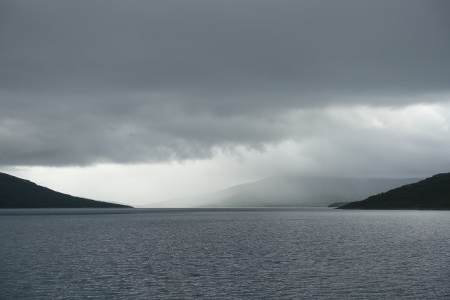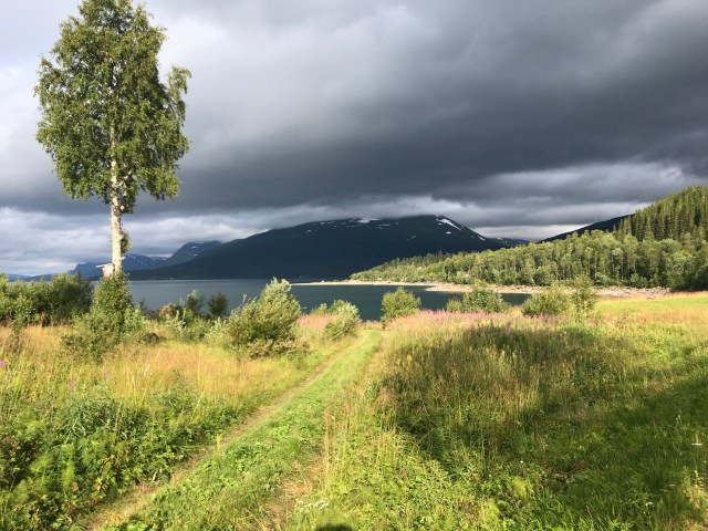 Der Weg von Røyrvik hierher war landschaftlich ein Traum. Nicht so ein Traum war das Wetter, das mir zum ersten Mal seit dem Start in Lindesnes nicht so wohl gesonnen war. Eine Regenfront folgte der nächsten und so richtig trocken bin ich eigentlich nie geworden. Zudem sind die Temperaturen zwischenzeitlich ordentlich in den Keller gegangen. Aber: Auch das gehört dazu und wer einmal in einer solchen Wetterlage im norwegischen Fjell unterwegs war, weiß, dass der Anblick herannahender Wolkenfronten in dieser Landschaft an Dramatik kaum zu überbieten ist. Somit hat alles in gewisser Weise seinen Reiz.