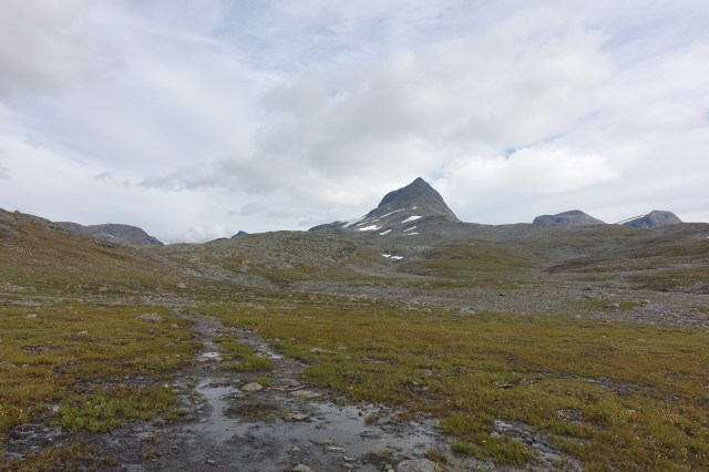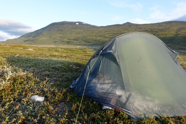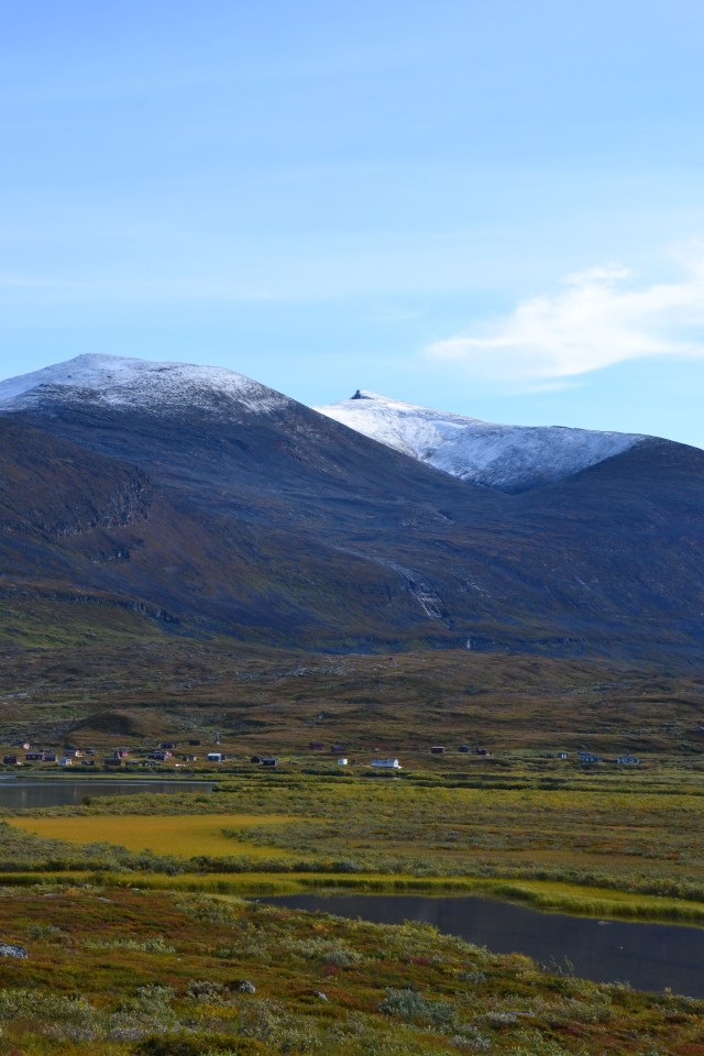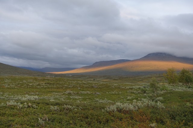 Der Tag an dem ich Wendelin treffe, ist zeitgleich auch der Tag der dritten großen Veränderung. Die vergangenen Monate war ich fast immer in Gebieten (oder auch zu Jahreszeiten) unterwegs, in denen wenige andere Menschen meinen Weg gekreuzt haben. Nun stehen wir plötzlich auf dem Padjelantaleden, der in den vergangenen Jahren – so zumindest meine Wahrnehmung – deutlich an Bekanntheit zugenommen hat. Plötzlich sind da ständig andere Menschen und nachdem ich zunächst meiner über Monate antrainierten norwegischen Gewohnheit folgend, mit jedem einen kurzes Gespräch beginne, stelle ich nach kurzer Zeit fest, dass das so nicht funktioniert. Oder ich dann zumindest nicht mehr von der Stelle komme. Also nur kurz grüßen und weiter geht’s. Richtiggehend überfordert bin ich, als wir in der Fjällstation in Ritsem ankommen. So viele Menschen auf so engem Raum habe ich seit langer, langer Zeit nicht gesehen. Eine gute Vorbereitung auf das, was kurz darauf kam. Nachdem wir zwei Tage im Regen und Wind nach Norden gelaufen sind, sind wir auf den nördlichen Kungsleden und somit wohl auf den am meist frequentierten Wanderweg Schwedens getroffen. Breite, tief ausgetretene Pfade, die aussehen, als sei eine Herde Rinder durchgezogen, viele Planken und unzählige Plätze, denen man ansieht, dass hier Menschen gezeltet haben. In steter Folge reihen sich große Hütten aneinander und auch jetzt zur Nebensaison begegnen einem am Tag mindestens 50 Menschen. Ich möchte hier gar nicht so negativ klingen, denn tatsächlich denke ich, dass der Kungsleden gerade unerfahrenen Wanderern die Infrastruktur bietet, die notwendig ist, um sicher die ersten Erfahrungen im hohen Norden zu machen. Und die Natur ist gigantisch. Man folgt die meiste Zeit einem langgezogenen Trogtal, rechts und links ragen hohe Berge auf, unter ihnen auch der Kebnekaise, mit 2097m der höchste Berg Schwedens. Nachdem wir die ersten zwei Tage vom Regen gebeutelt waren, bekamen wir an den zwei folgenden Tagen bei strahlendem Sonnenschein das ganz große Schauspiel mit atemberaubender Fernsicht geboten. Dennoch, ich ziehe die Einsamkeit vor. Und zudem sind die norwegischen Hütten nicht nur deutlich günstiger, sondern auch um einiges gemütlicher.