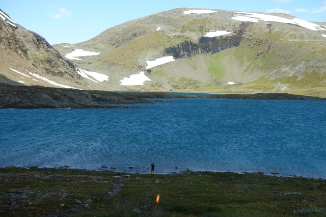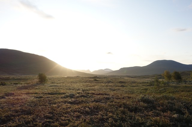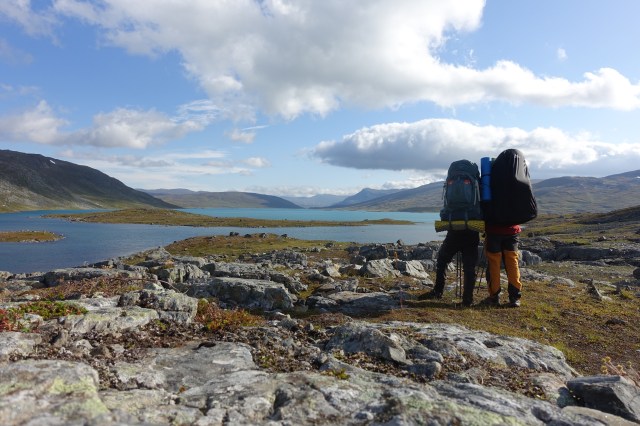 Kurz nachdem sich der Sommer mit wehenden Fahnen endgültig verabschiedet hatte, gab es bereits die nächste Veränderung. Wie schon seit langer Zeit geplant, habe ich mich auf dem Padjelantaleden, einen Tagesmarsch von Änonjálmme entfernt, mit Wendelin, meinem Mann und Lieblingswanderpartner, getroffen, der mich – so zumindest ist der Plan – bis zum Nordkap begleiten wird. Neben der Freude über unser Wiedersehen nach so langer Zeit, ist alles auch ein wenig ungewohnt. Plötzlich bin ich nicht mehr alleine unterwegs, schlafe nicht mehr in dem kleinen Zelt, das in den letzten Monaten zu einem Stück Heimat geworden ist. Bin plötzlich nicht mehr nur für mich und mein eigenes Wohlergehen verantwortlich. Mit seiner Ankunft ist zudem „Zuhause“ ein ganzes Stück näher gerückt. Plötzlich denke ich wieder an die Arbeit, an meine Wohnung und all die Dinge, die zuhause passieren. Das ist auf keinen Fall negativ (schließlich mag ich mein Zuhause), aber es ist ungewohnt. Habe ich es im Laufe des Sommers so gut verstanden nur von Tag zu Tag zu leben (und zu denken), muss ich jetzt aufpassen, nicht schon mit dem halben Kopf wieder in den Alltag zu rutschen. Denn noch sind es ja einige Wochen, die da vor mir liegen. Aber das wird mir sicherlich gelingen und ich werde – nach ein bisschen Umgewöhnung – wieder mit ganzem Kopf und Herz hier draußen sein.